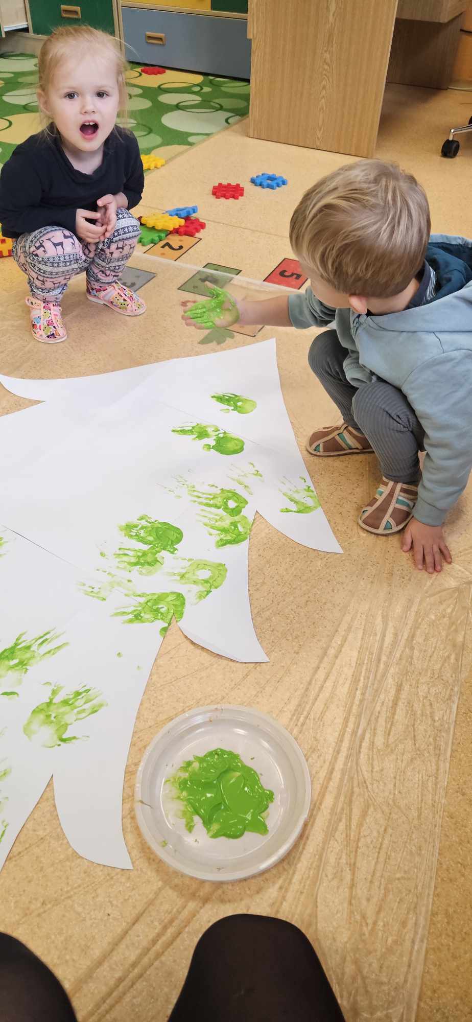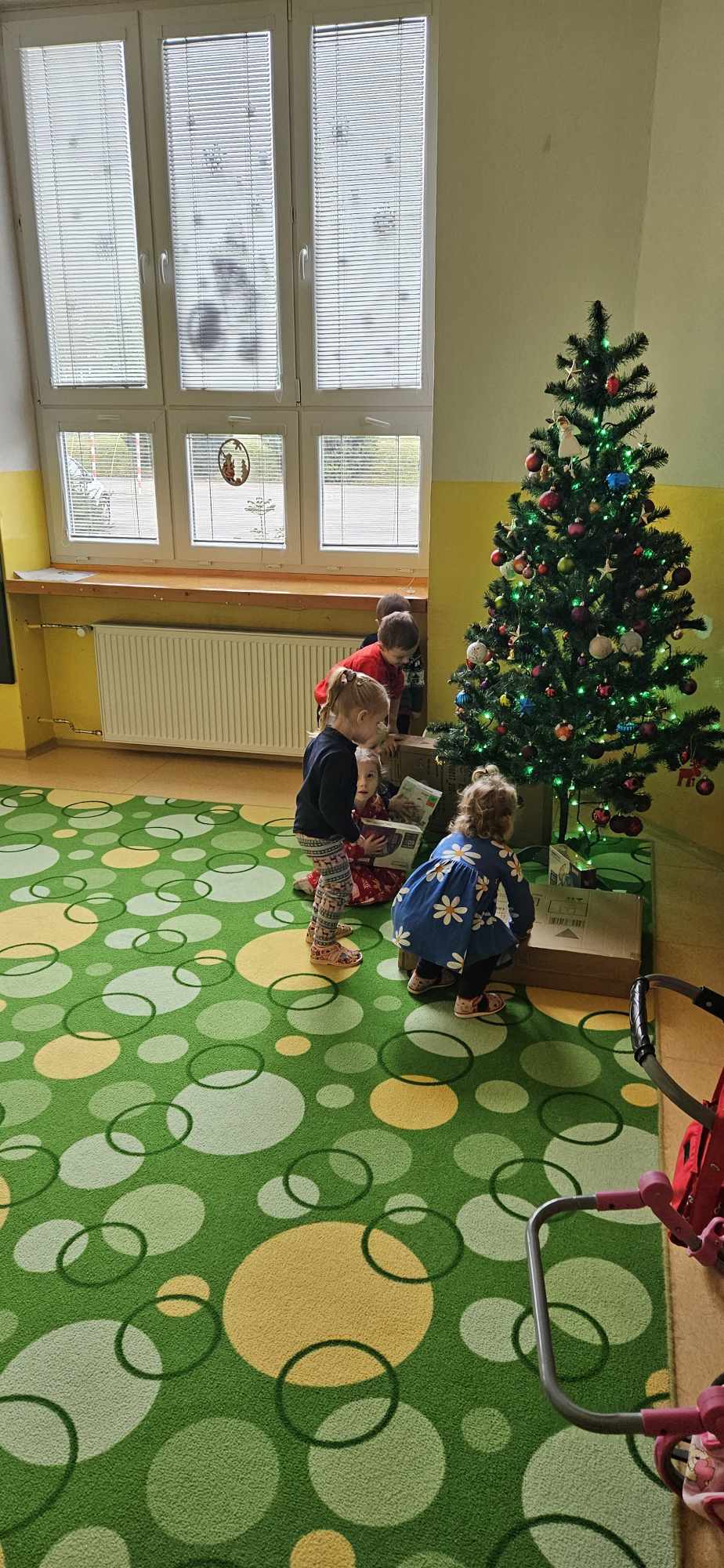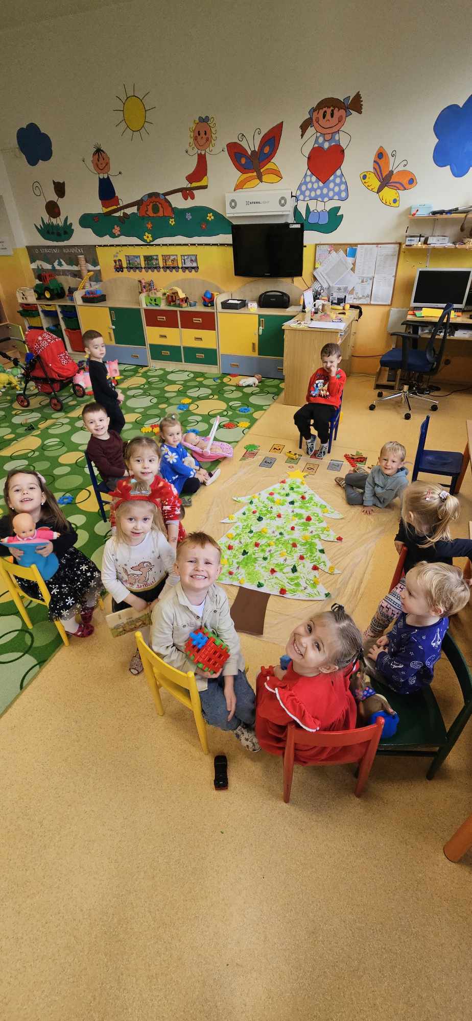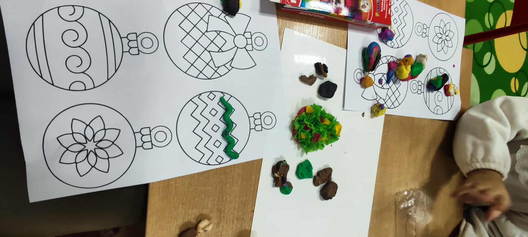 Najmenšie deti si vyrobili stromček z plastelíny, ktorý následne dotvárali krepovým papierom, čím vznikol farebný a originálny výtvor. Okrem toho modelovali z plastelíny malé dekorácie, ktoré použili na vyzdobenie vianočných guľôčok. Tento spôsob tvorby podporoval jemnú motoriku, kreativitu a predstavivosť.