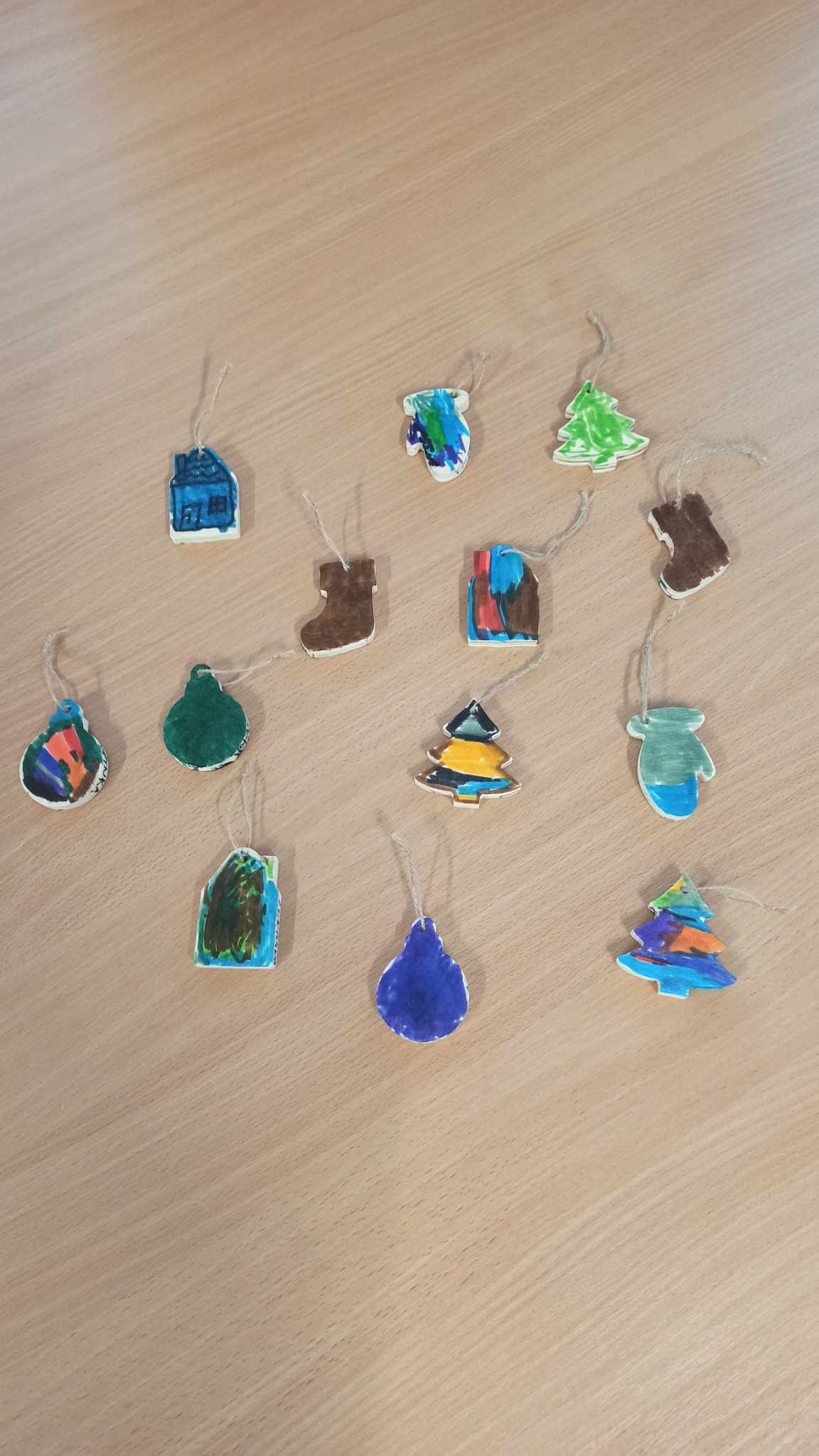Deti sa venovali tvorbe vlastných vianočných ozdôb na stromček. Na drevené tvarované ozdoby kreslili fixkami a zdobili ich podľa vlastnej fantázie. Pri tejto aktivite si deti rozvíjali jemnú motoriku, kreativitu a predstavivosť a zároveň vytvorili originálne dekorácie, ktorými mohli ozdobiť triedu.
