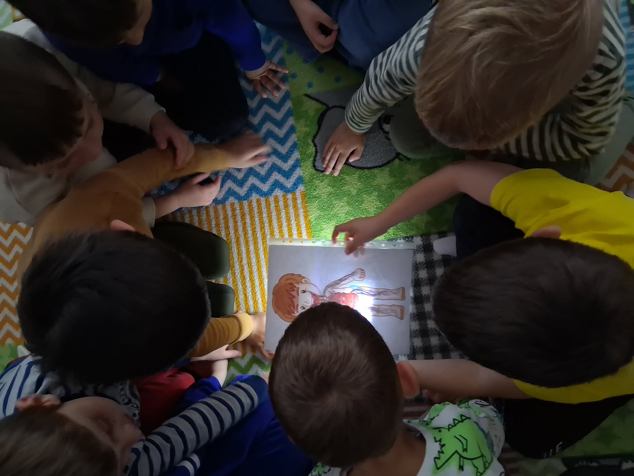 Súčasťou aktivít bolo aj presvietenie postavy s orgánmi, kde si deti názorne ukazovali, kam jednotlivé orgány patria a akú majú funkciu.