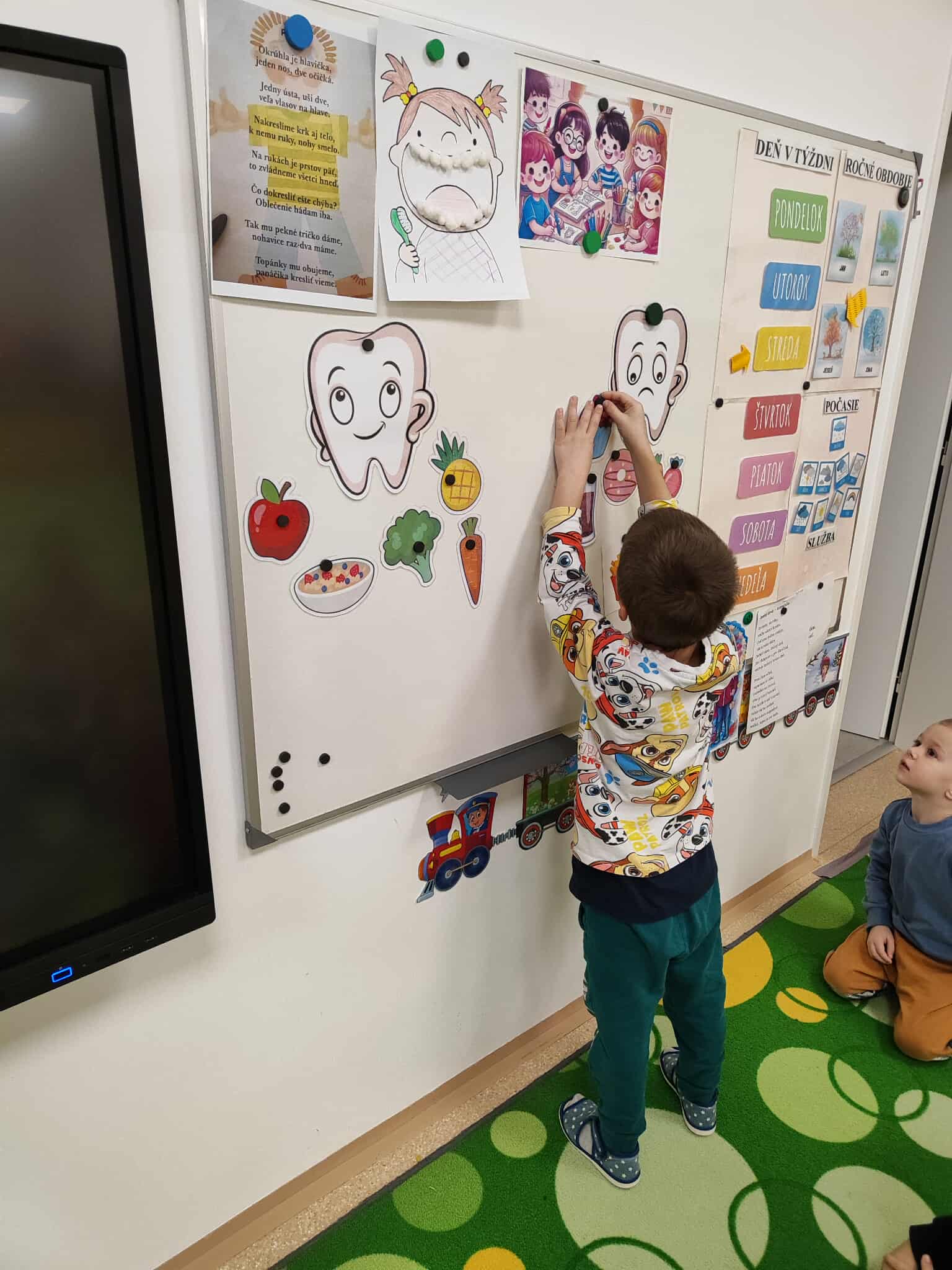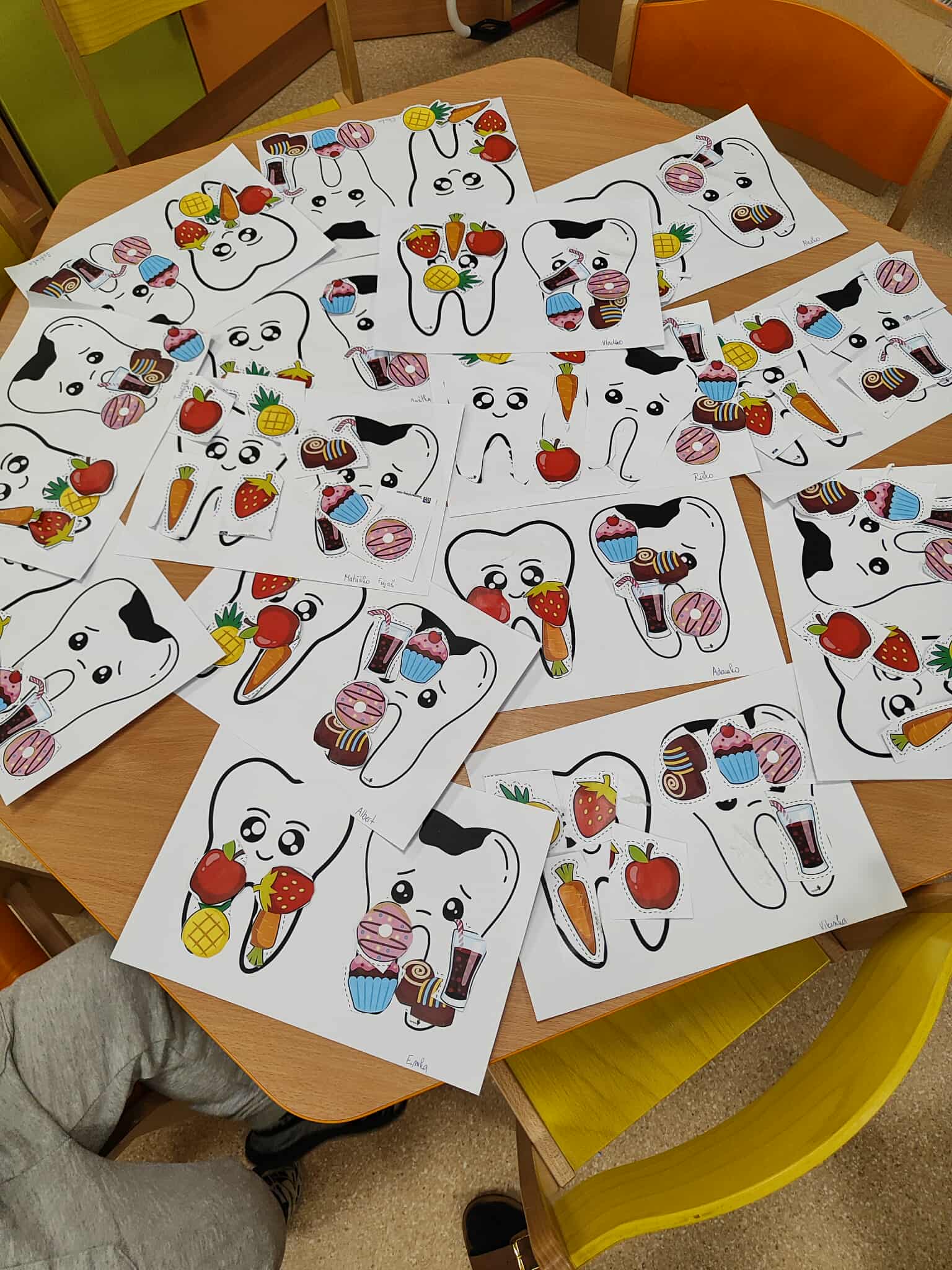 Deti sa zoznamovali s tým, ako sa správne starať o zúbky a prečo je dôležité dbať na ústnu hygienu. Rozprávali sa o tom, čo je pre zuby dobré a čo im, naopak, škodí, a učili sa rozlišovať zdravé a nezdravé potraviny.