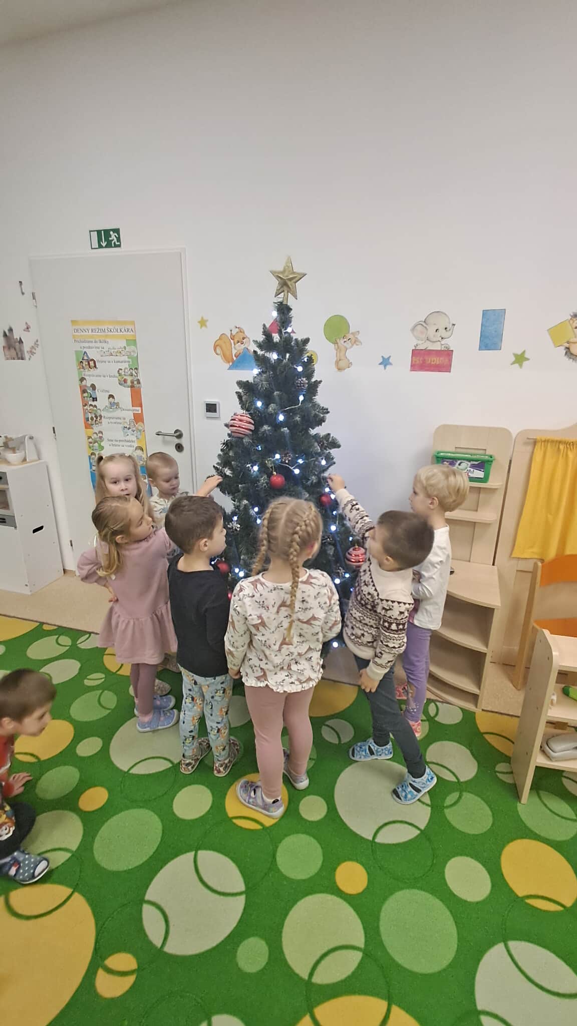 Pri tejto aktivite si deti rozvíjali jemnú motoriku, spoluprácu a pocit spolupatričnosti. Zdobenie stromčeka prinieslo do škôlky radosť, pokoj a čaro blížiacich sa Vianoc.