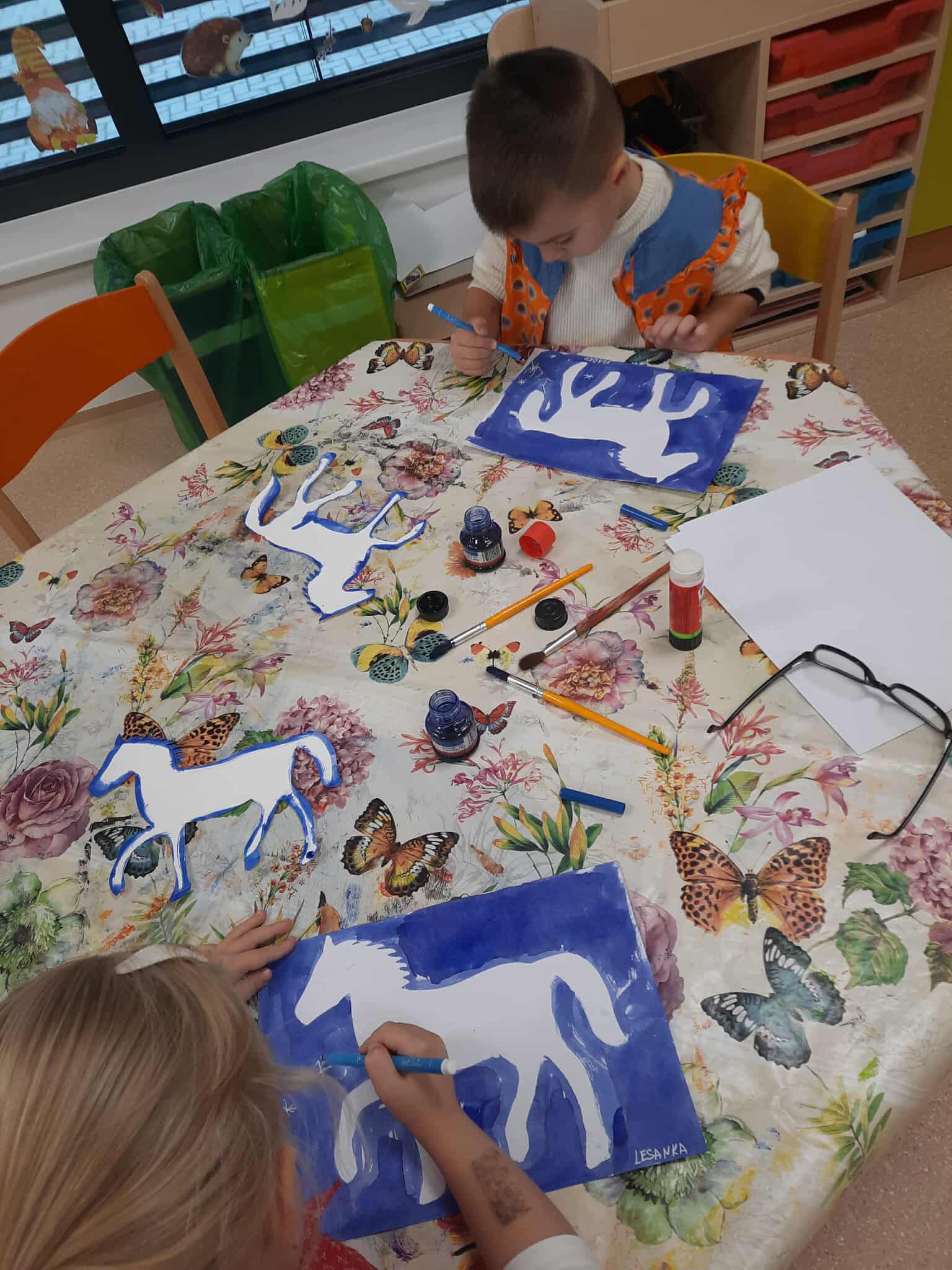 Deti sa zoznamovali s témou Martin na bielom koni prostredníctvom tvorivých a grafomotorických aktivít. Obkresľovali obrázky atramentom, čím si precvičovali presnosť a sústredenie.
