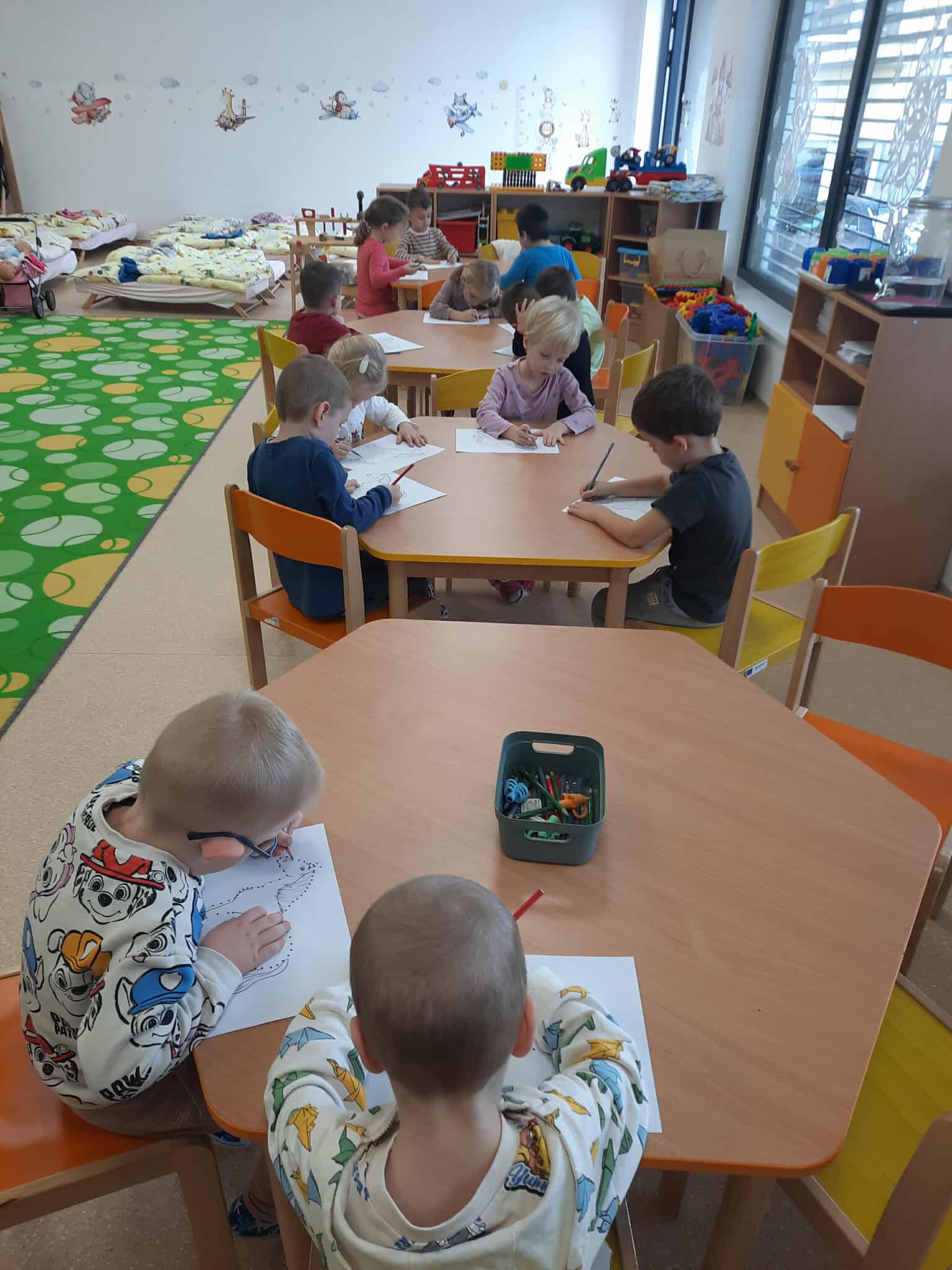 Svoje poznatky si upevňovali prostredníctvom tvorivých aktivít – kreslili postavu, lepili orgány na siluetu tela a vytvárali rôzne obrázky. Aktivity podporovali poznávanie vlastného tela, rozvoj slovnej zásoby a jemnej motoriky.