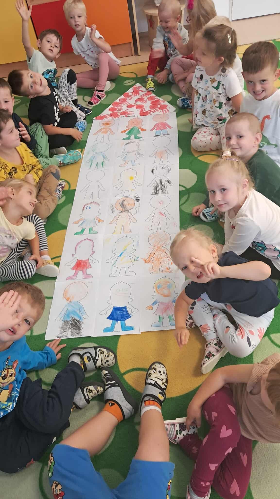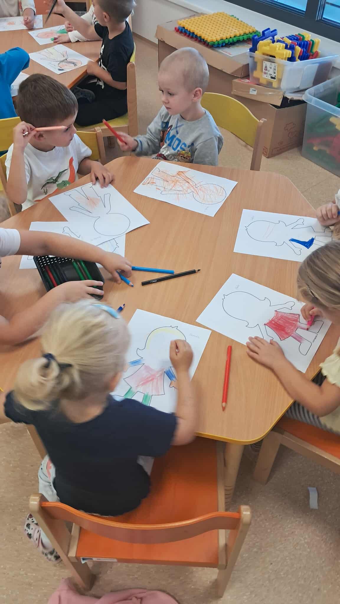 Deti tvorili dva domčeky priateľstva, ktoré symbolizovali spolupatričnosť a kamarátstvo v triede. Jeden domček vytvorili z odtlačkov svojich rúk, čím ukázali, že každý je dôležitou súčasťou triedy. Druhý domček vznikol z kresieb kamarátov – deti navzájom kreslili svoje portréty a do domčeka ich spoločne umiestnili. Takto vznikli dva originálne domčeky plné priateľstva, farieb a úsmevov, ktoré budú deti sprevádzať počas celého školského roka.