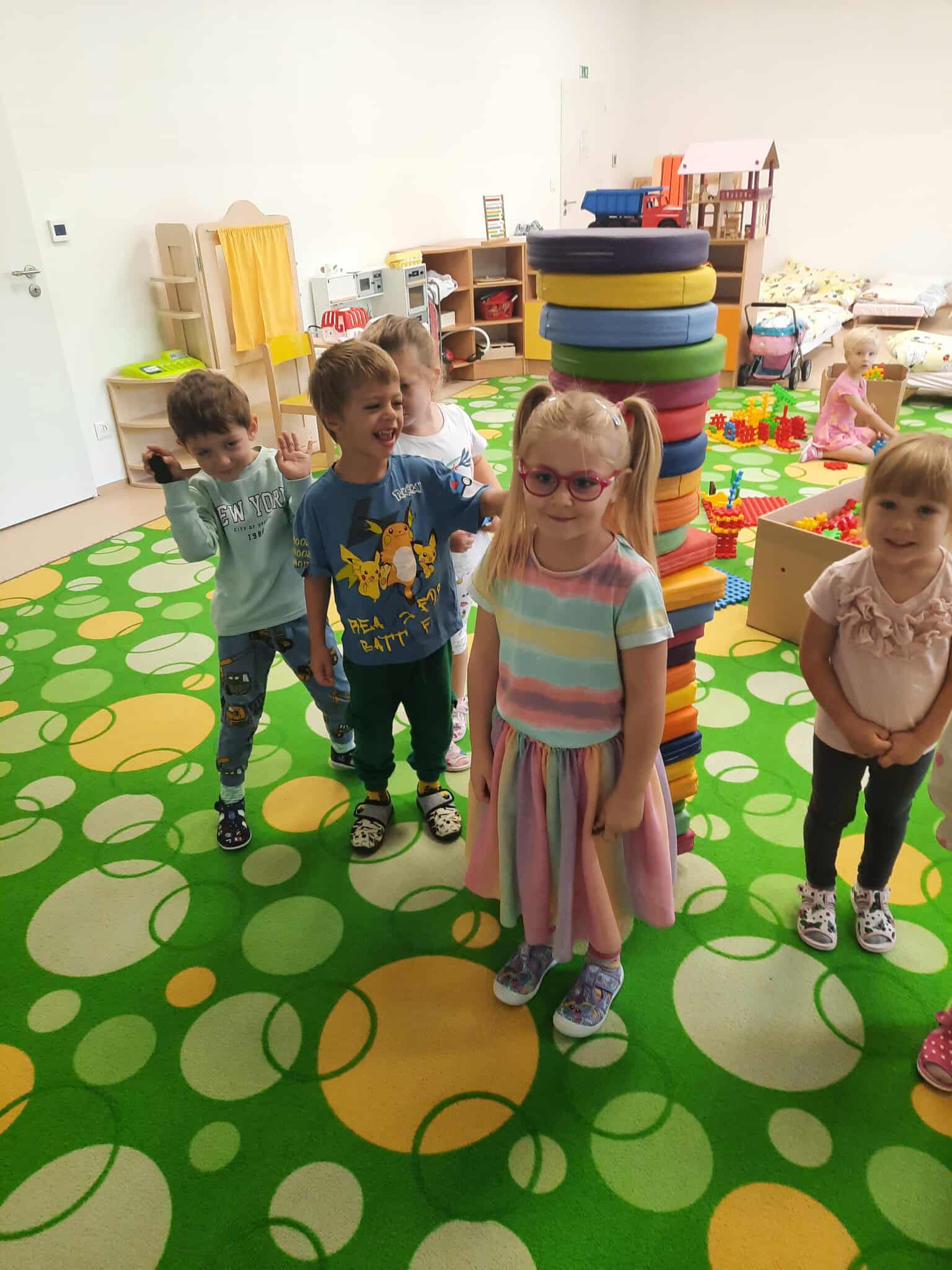Najmenšie deti majú za sebou prvé dni v materskej škole. Dopoludnia sa niesli v znamení hier, keď si deti spoločne skúšali nové hračky, stavali z kociek a objavovali rôzne zákutia triedy. Nechýbal ani tanec a pohybové aktivity, ktoré priniesli veľa smiechu a uvoľnenej zábavy. Deti zároveň spoznávali ihrisko, kde behali, šmýkali sa, liezli na preliezkach a objavovali nové miesta na hranie. Tieto dni pomohli deťom zvyknúť si na nové prostredie, nadviazať prvé priateľstvá a urobiť z MŠ miesto, kde sa cítia bezpečne a šťastne.