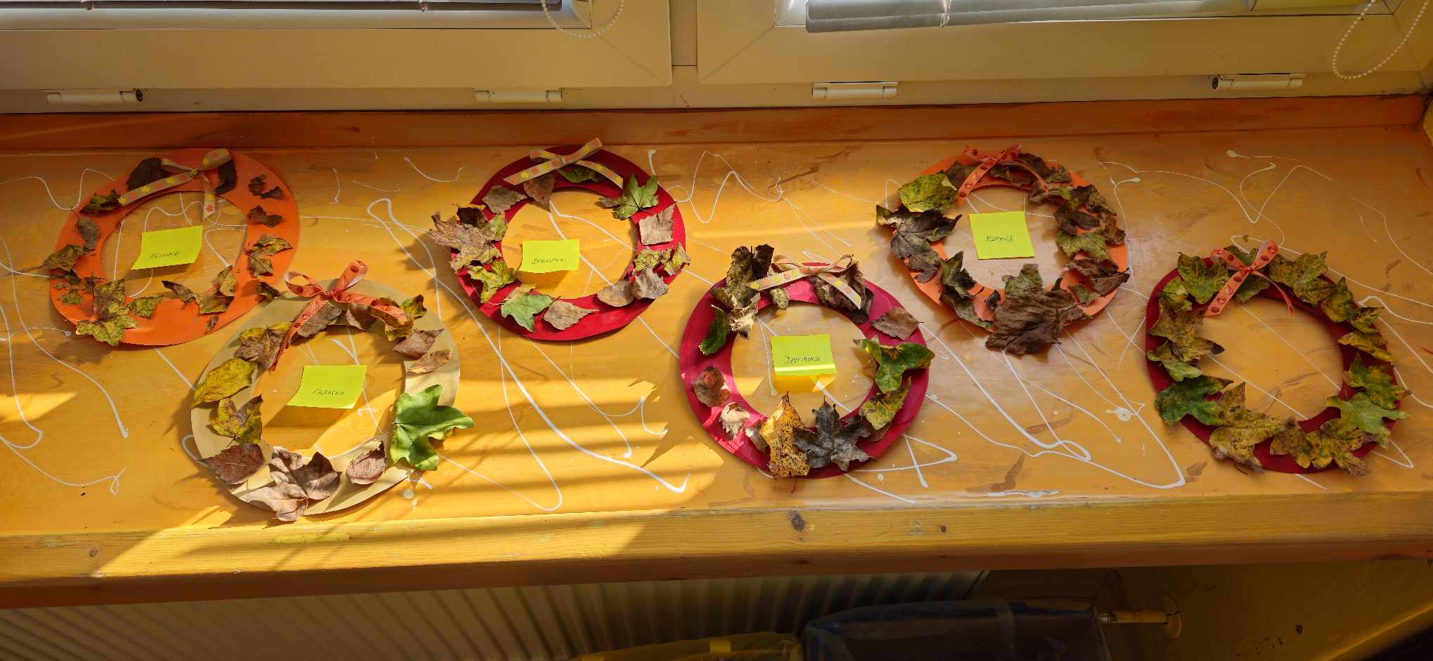 Deti privítali jeseň rôznymi tvorivými činnosťami. Vytvárali jesenné venčeky, z farebného lístia si deti tvorili stromy, ktoré ilustrovali krásu jesennej prírody a rozvíjali pritom jemnú motoriku. Veľkým zážitkom bola aj aktivita s atramentovou kalužou – deti na papier vytvorili kaluž z atramentu a potom na ňu nalepili vystrihnuté gumáky, čím vznikali zábavné a originálne jesenné výkresy.
