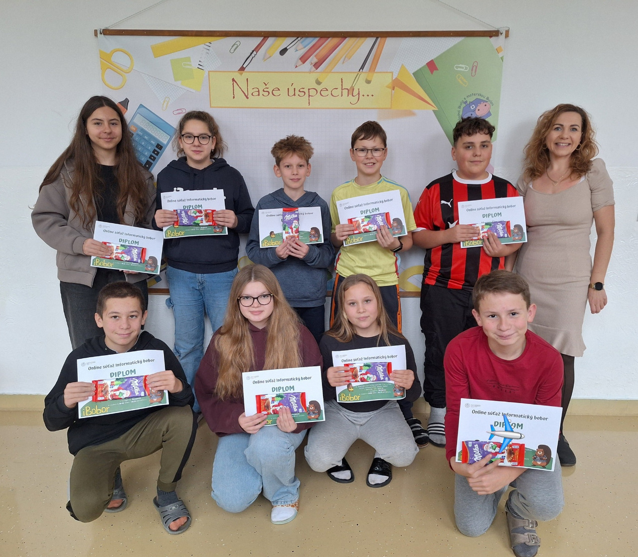 V týždni 10. – 17.11 2025 sa uskutočnila celoslovenská informatická súťaž iBobor. Tento rok na našej škole súťažilo 34 žiakov v dvoch kategóriách. V kategórií Kadet sa o najlepší výsledok postaral žiak ôsmeho ročníka a s percentilom 94,47 sa stal úspešným riešiteľom. V kategórii Benjamín sa z našej školy súťaže zúčastnilo 25 žiakov a takmer polovica z nich dosiahla titul úspešného riešiteľa. Najlepšie výsledky dosiahla žiačka zo 7.A s percentilom 99,23. Okrem jej výborného výsledku v tejto kategórii dosiahli titul úspešného riešiteľa piati žiaci zo siedmeho ročníka, zo šiesteho ročníka to boli štyria žiaci. Všetkým súťažiacim ďakujeme za reprezentáciu školy a úspešným riešiteľom gratulujeme. Za prípravu ďakujeme pani učiteľke M. Cimerákovej.