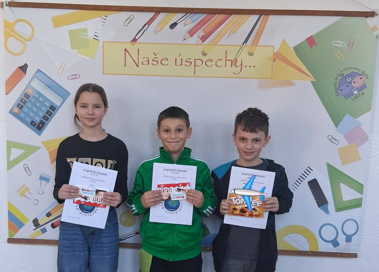 Tešíme sa, že k nám „dorazili“ výsledky okresného kola Geografickej olympiády 2022, ktorá sa uskutočnila vo februári. Svoje vedomosti z geografie zúročilo 8 žiakov ZŠ s MŠ Udiča, ktorí sa do súťaže zapojili a súťažili online formou. Naša radosť je o to väčšia, že až 7 žiakov z 8-ich sa stalo úspešnými riešiteľmi, konkrétne: