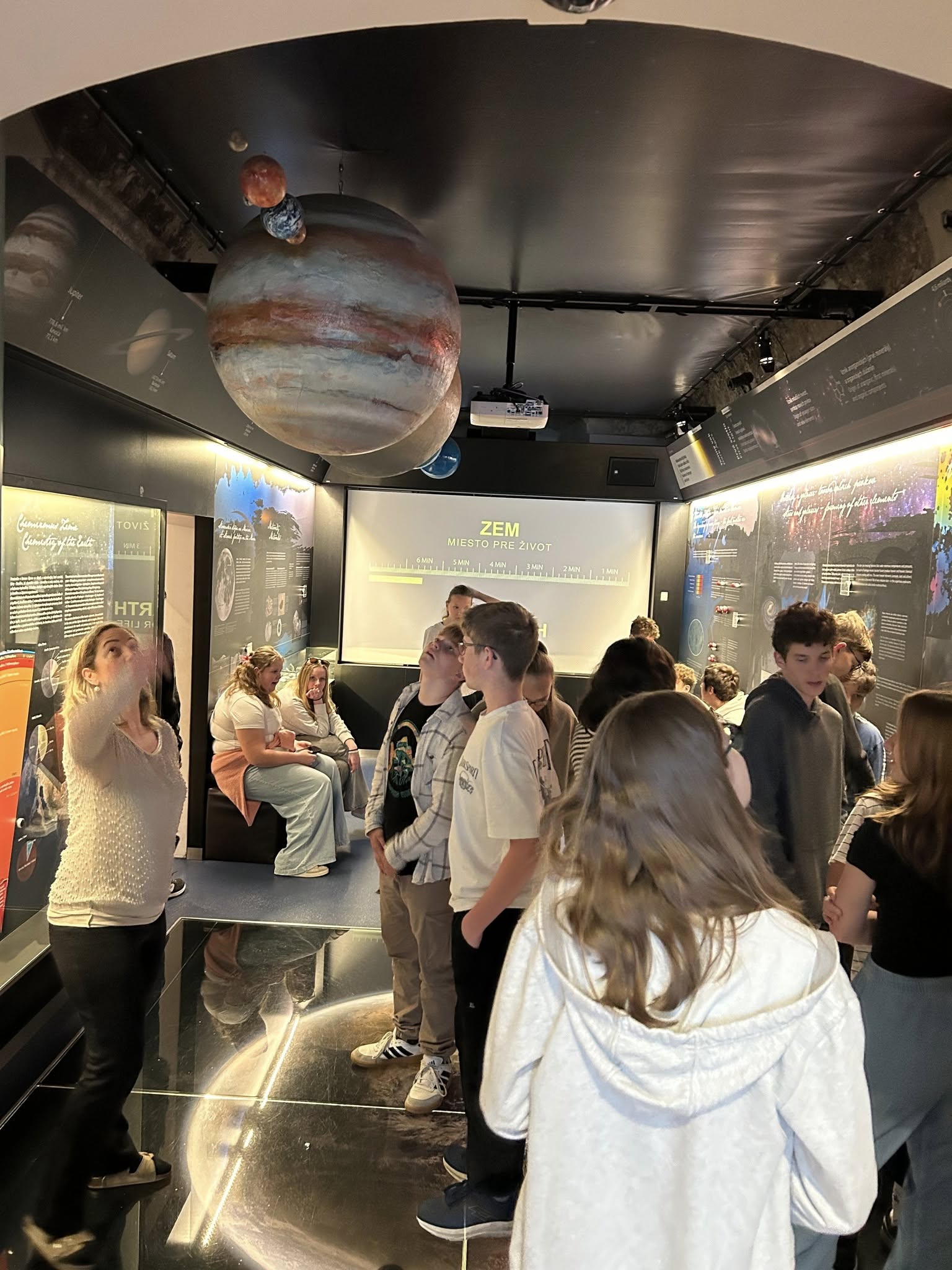 V piatok 18.11.2022 sa naši štvrtáci a piataci vybrali s pani učiteľkami Mgr. Krškovou, Mgr. Lazarovou a PhDr. Hamarovou na cestu za poznaním vesmíru. Cieľovým mestom bola Bratislava a cieľové miesto Incheba Expo Aréna, v ktorej bola realizovaná výstava Cosmos Discovery. Expozícia vznikla v spolupráci s americkou NASA, múzeom a vzdelávacím centrom Cosmosphere a slovenskými a českými odborníkmi. Naši žiaci s pani učiteľkami sa tak mohli dozvedieť viac zaujímavostí z histórie pilotovaných vesmírnych letov (od začiatku po súčasnosť – dokonca aj o plánoch do budúcnosti), pozrieť si rozmanité exponáty z USA a Ruska, ktoré boli vo vesmíre, poobdivovať skafandre, obsah zariadenia vesmírnych lodí, ako aj ich modely. Tí odvážnejší si mohli vyskúšať aj najmodernejšie 3D technológie v interaktívnom vesmírnom prevedení. Plní nadšenia a obohatení o množstvo zážitkov sme sa šťastne vrátili domov. Ďakujeme iniciátorke exkurzie pani učiteľke Krškovej za krásny výlet ;-)